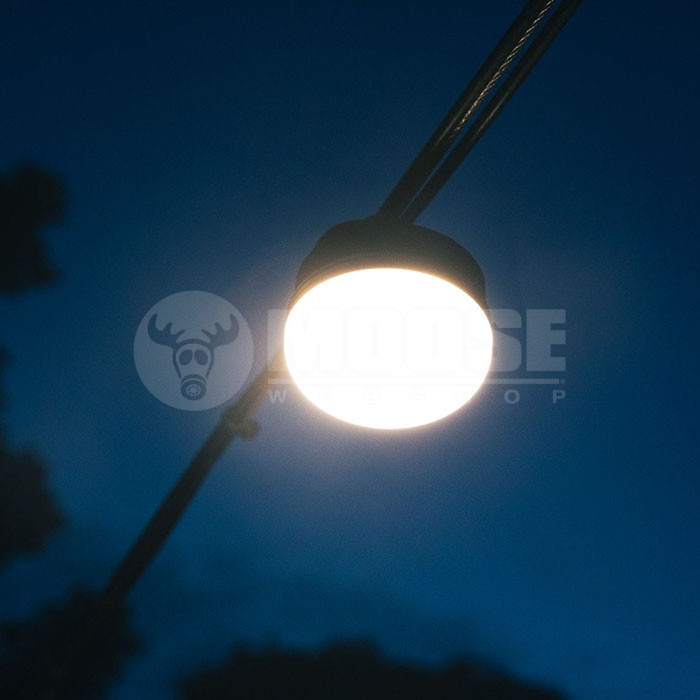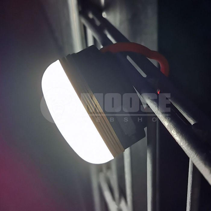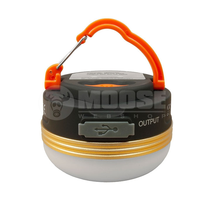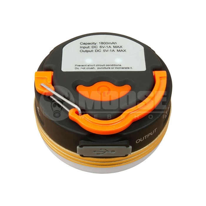 Könnyű, kompakt és nagy fényerejű LED-es kempinglámpa (300 lumen) powerbank funkcióval. Kellemes, szórt fényt ad amely egyenletesen, 360°-ban sugároz. Kis asztali lámpaként gyönyörű környezeti fényt teremt. A kihajtható, pattintós zárral ellátott függesztőhorog számos lehetőséget kínál a lámpa gyors és egyszerű felakasztására. A talpba épített mágnes lehetővé teszi a lámpa fémtárgyakhoz való rögzítését. A lámpa 2 fényerősséggel, valamint villogó fénymóddal és SOS üzemmóddal rendelkezik. A beépített 1800 mAh-s Li-Ion akkumulátornak és a micro USB kimenetnek köszönhetően power bankként is használható. Az USB bemeneten keresztül könnyen újratölthető. A töltőkábelt mellékeltük.