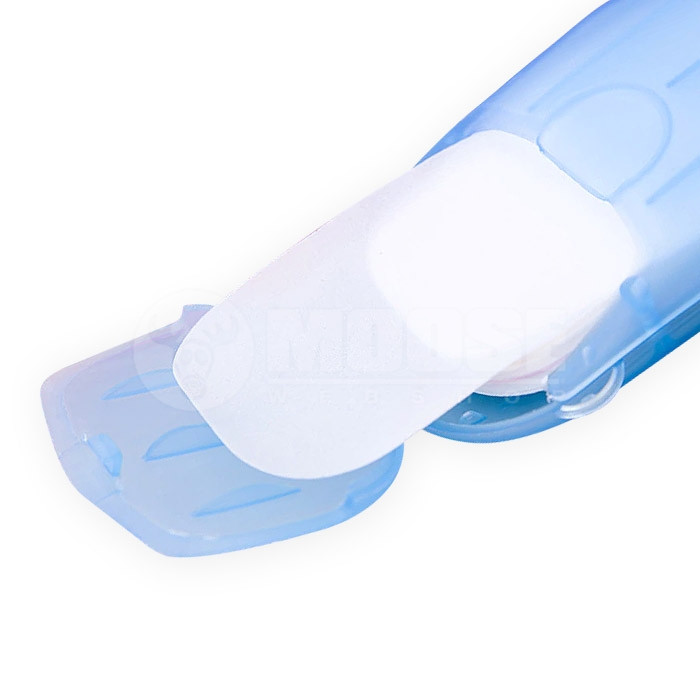 Ez a nyitható színes* műanyag tok, a benne tárolt 20 db illatos szappanlevéllel, bármilyen utazáskor kéznél van, ha tisztálkodnia kell, legyen az természetjárás vagy városi kaland.